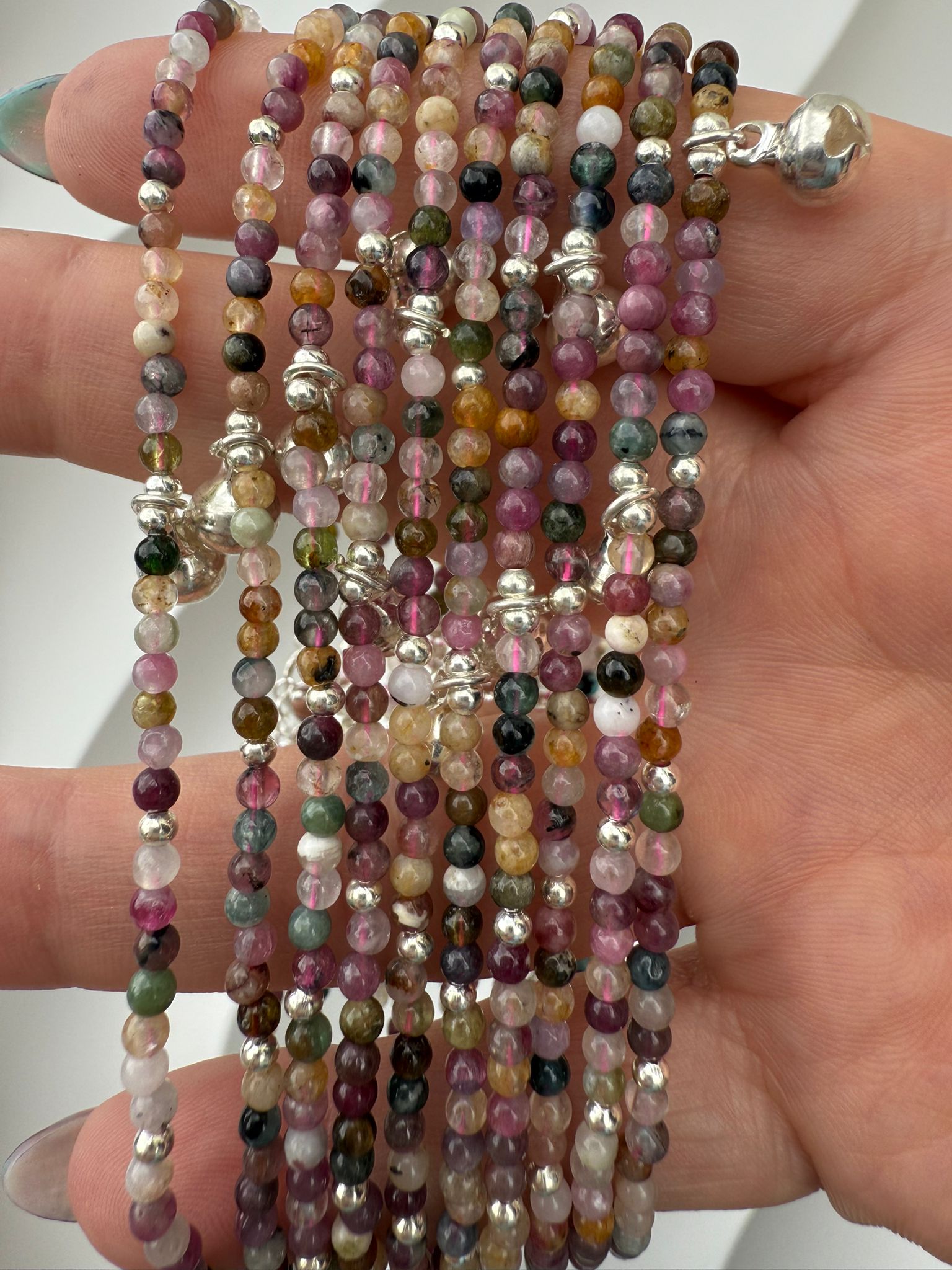 Various gem stone ankle bracelets, available in a variety of types, Flourite, Black Spinel, Apatite, Aquamarine, Lapis Lazuli, Tourmaline, Sunstone, Rose Quartz & Pyrite.